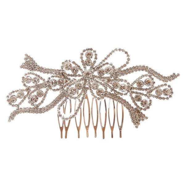 Enhance your look with this elegant crystal flower hair comb, ideal for weddings and special occasions. Featuring shimmering crystals and rhinestones, this sophisticated accessory brings a refined sparkle to any hairstyle. Made from lead- and nickel-free materials, it ensures safe, comfortable wear. Designed for versatility, it can be used as a clip comb or headband, adapting effortlessly to different styles. Perfect for adding a radiant touch to casual updos, intricate braids, or formal events like pageants, bridal parties, proms, and themed celebrations. Certified lead and nickel safe.