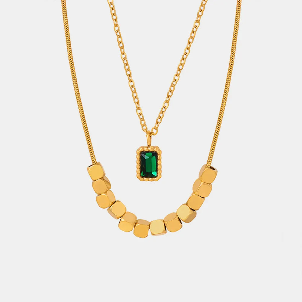 Crafted from 18K gold-plated titanium steel and adorned with zircon, this double-layered necklace combines durability and elegance. To maintain its quality, avoid wearing it during exercise, as sweat may cause chemical reactions that lead to deterioration and corrosion. Imported and designed in one size, the chain measures 14.17 inches with an additional 1.97-inch extension, weighing just 0.2 oz (5 g).